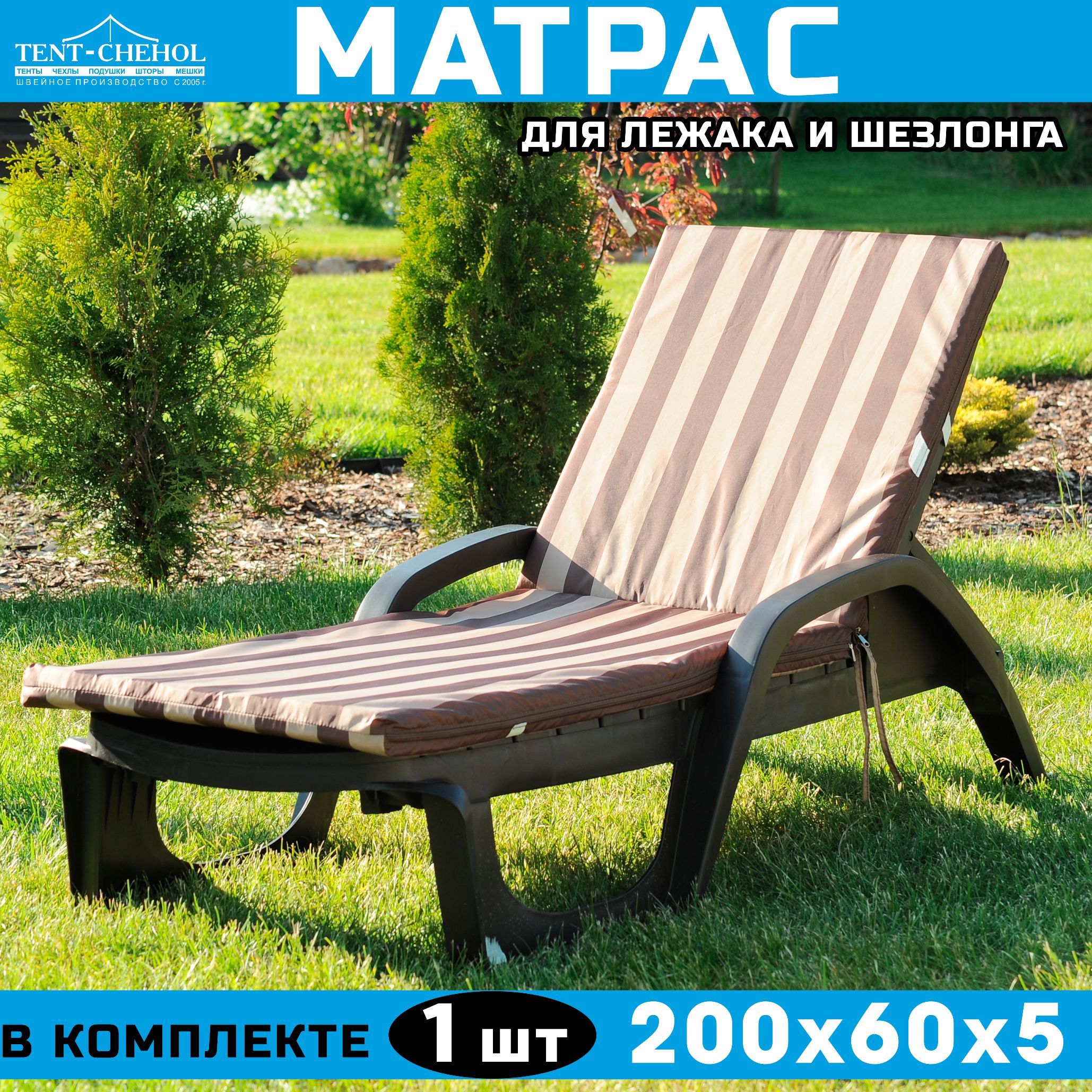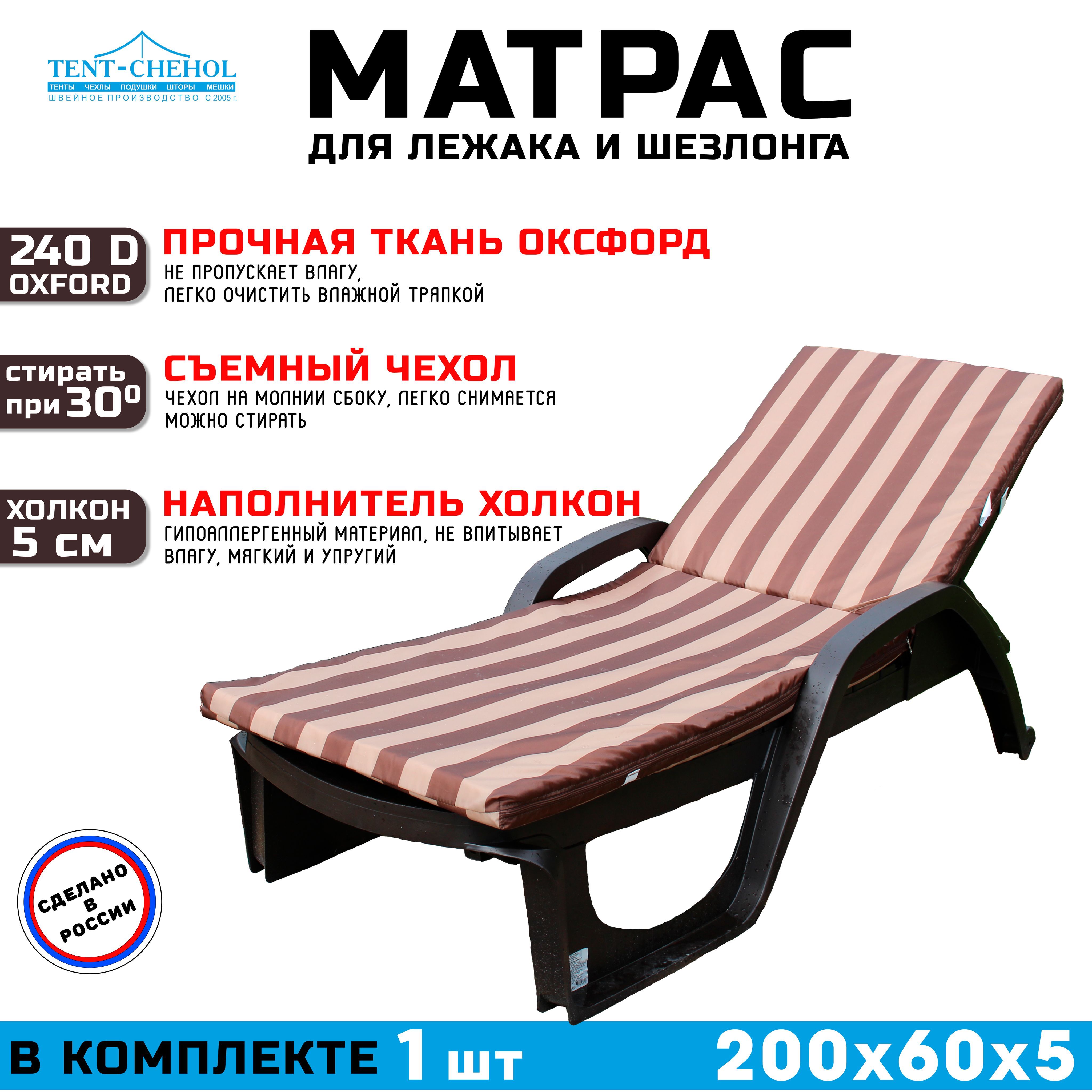 Краткое описание «Матрас для шезлонга и лежака 200х60х5 (бежево-коричневый)»